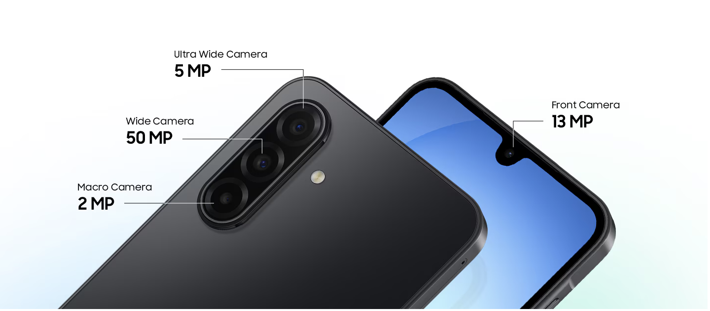 Galaxy A17 5G được trang bị cụm ba camera ấn tượng, gồm camera góc rộng 50 MP, camera góc siêu rộng 5 MP và camera macro 2 MP, giúp bạn chụp những bức hình rõ đến từng chi tiết. Thêm vào đó là khả năng chuyển đổi chế độ chụp mượt mà, từ cảnh quan rộng lớn đến những cảnh cận sắc nét, giúp bạn ghi dấu mọi khoảnh khắc cuộc sống với màu sắc chân thực và rõ ràng nhất