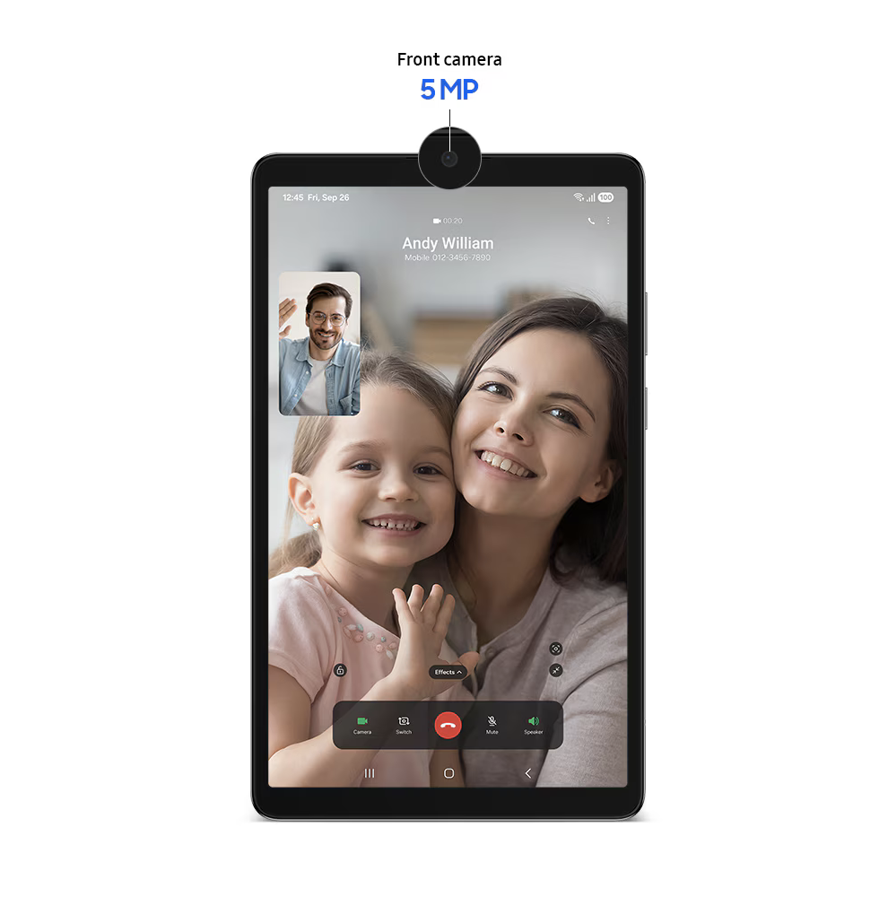 Luôn kết nối với những người thân yêu bằng hình ảnh rõ ràng, chân thực. Galaxy Tab A11 được trang bị camera trước 5 MP, mang đến chất lượng cuộc gọi video sắc nét, sáng rõ. Dù là trò chuyện cùng gia đình hay họp nhóm với đồng nghiệp, bạn đều có thể nhìn thấy nụ cười và cảm xúc một cách sống động