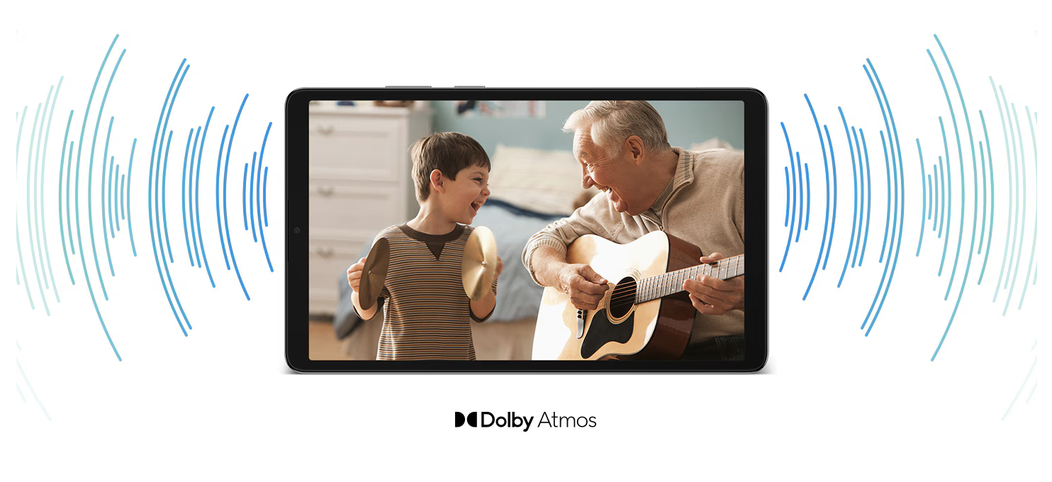 Galaxy Tab A11 được trang bị loa kép chuẩn Dolby, mang đến trải nghiệm âm thanh phong phú và đa chiều. Từ những playlist yêu thích đến các bộ phim mới nhất, âm thanh 3D sống động đưa bạn hòa mình vào không gian giải trí với chất lượng trong trẻo, rõ nét và đầy cuốn hút. Ngoài ra, Galaxy Tab A11 còn hỗ trợ jack cắm tai nghe 3.5 mm, giúp bạn tiện lợi thưởng thức nội dung với tai nghe có dây